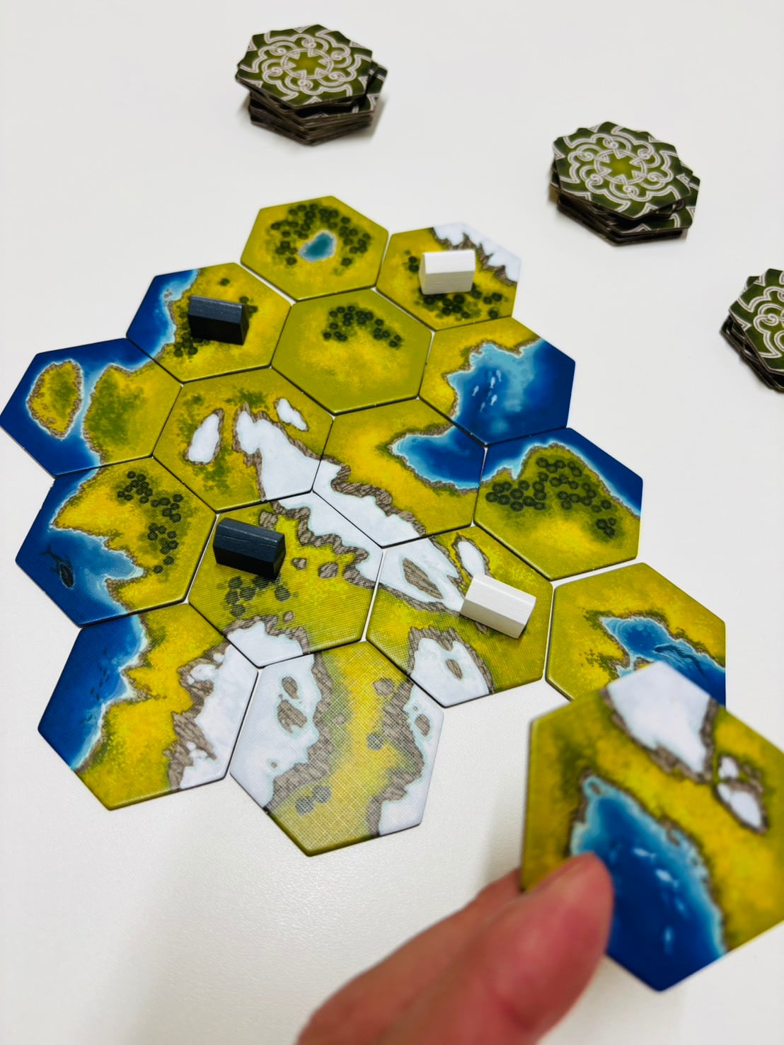 2)手番プレイヤーは地形タイルを1枚引き、つながるようにタイルを配置します。