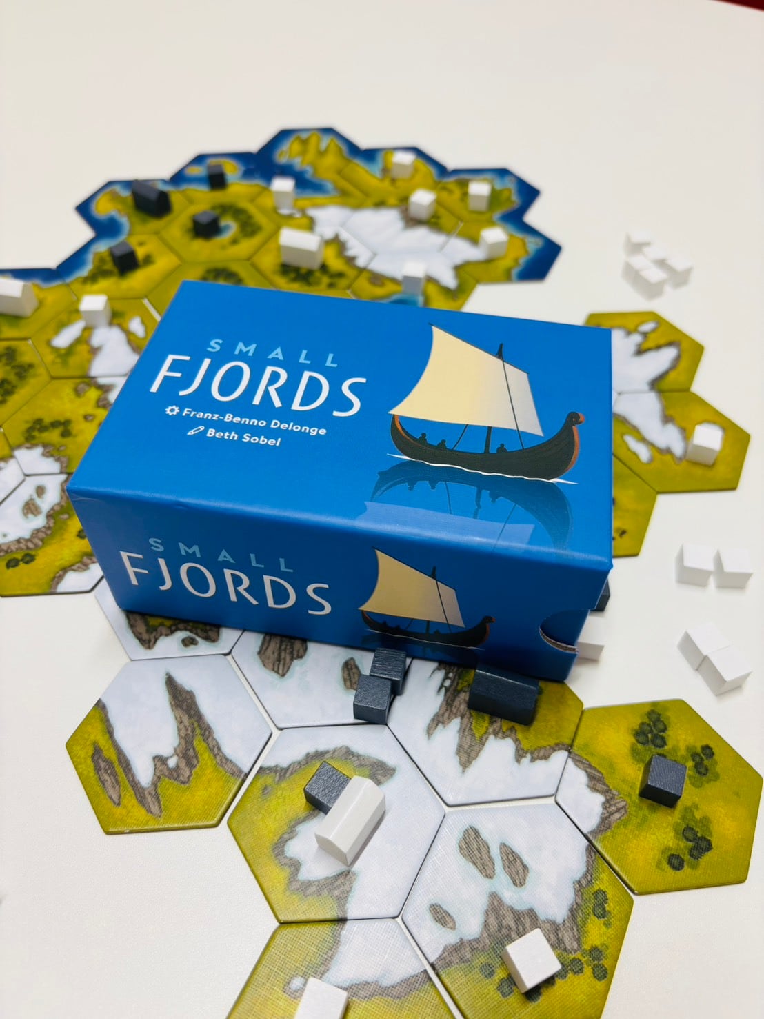 美しいフィヨルドの大地を作り、より多くの土地を取り合うタイル配置のエリアマジョリティゲームです。短い時間で遊べて、二人用ならではの読み合いや戦略がしっかりと詰まったゲームとなっています。