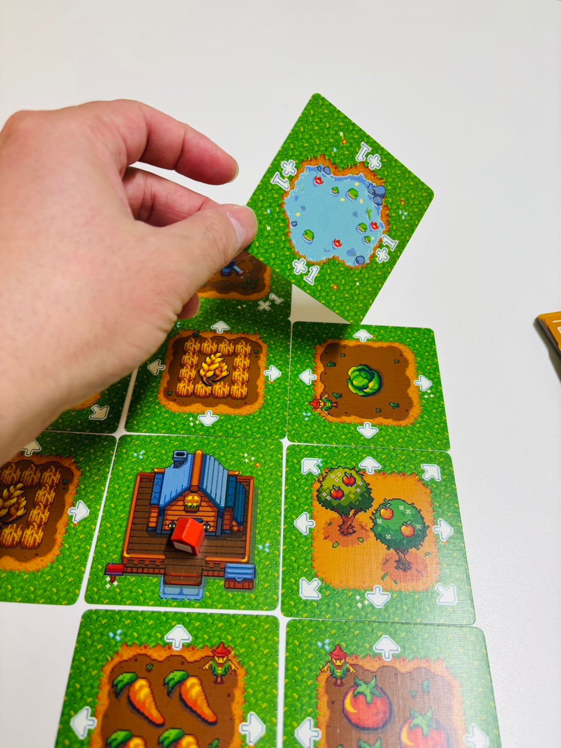自分のターンでは、表示中のカードを谷(ヴァレー)に置くか、自分のファームハウスを建てます。